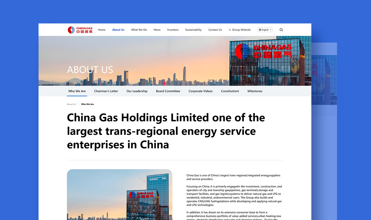 中國(guó)燃?xì)饪毓捎邢薰臼侵袊?guó)最大的跨區(qū)域綜合能源供應(yīng)及服務(wù)企業(yè)之一,香港聯(lián)交所主板上市企業(yè)。通過(guò)多年的發(fā)展,中國(guó)燃?xì)獬晒?gòu)建了以管道天然氣業(yè)務(wù)為主導(dǎo),液化天然氣、液化石油氣、智慧能源服務(wù)、電力及新能源、新型熱采設(shè)備和技術(shù)的開(kāi)發(fā)及應(yīng)用、燃?xì)庠O(shè)備及廚房用具、家居生活服務(wù)、網(wǎng)格“店商”新零售并舉的全業(yè)態(tài)發(fā)展結(jié)構(gòu)。