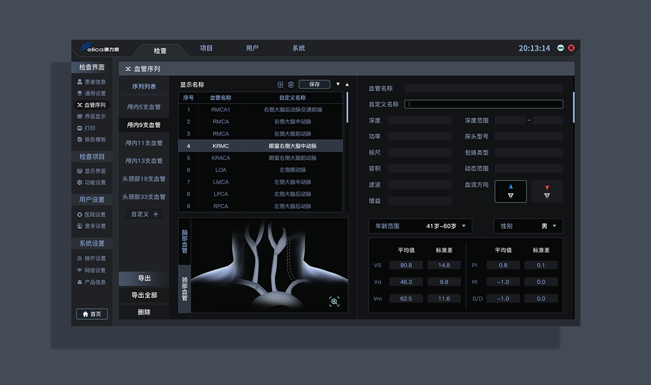 德力凱TCD與暈厥系統(tǒng)都是需要長(zhǎng)時(shí)間使用的設(shè)備系統(tǒng),且需要使用者高度集中注意力,未避免用戶產(chǎn)生視覺(jué)疲勞,影響觀看效果,整體以Dark Mode為主要方向,將界面的飽和度、亮度調(diào)整至合適的位置。在色彩選擇時(shí)也謹(jǐn)慎地避開(kāi)醫(yī)療行業(yè)特殊顏色,以免用戶使用時(shí)產(chǎn)生偏差理解。UI以沉穩(wěn)、安全、有保障為基礎(chǔ)理念設(shè)計(jì),給人營(yíng)造可靠、安全、有信心的氛圍。