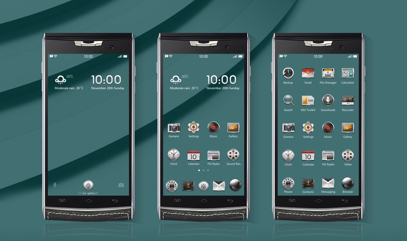 唯可可為DOOGEE T3深度定制設(shè)計(jì)了一 套輕奢簡(jiǎn)潔華麗的界面。從前期視覺(jué)的探 索到產(chǎn)品的定位與概念設(shè)計(jì),我們基于T 3的輕奢,獨(dú)特,雙屏、鋒銳的等等特性 ,展開(kāi)了系列的概念發(fā)散。