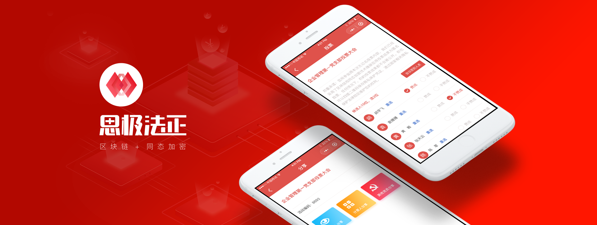 思極法政,采用不記名投票場景,將區(qū)塊鏈與同態(tài)加密技術(shù)相結(jié)合確保投票結(jié)果為匿名投票,可參與黨內(nèi)投票和發(fā)起投票。加密技術(shù)一定程度上保證投票公平公正性,使投票結(jié)果更具備真實(shí)性。
