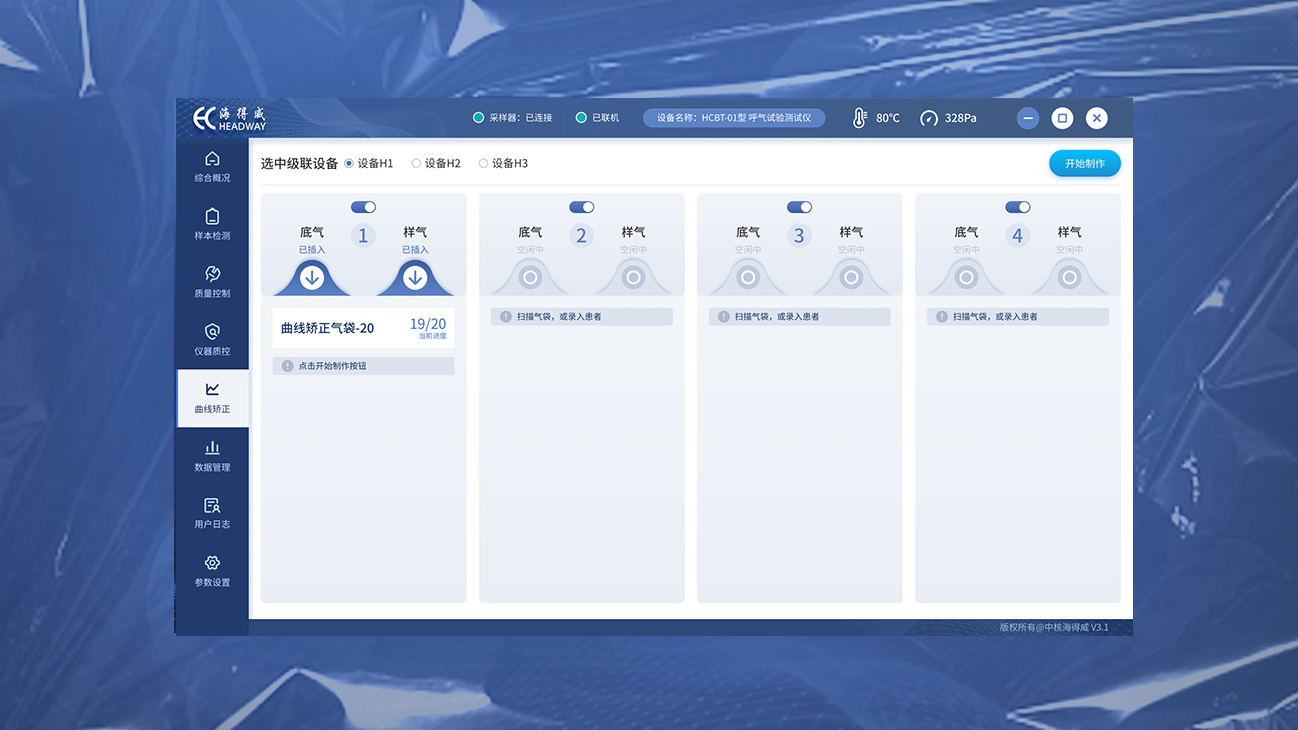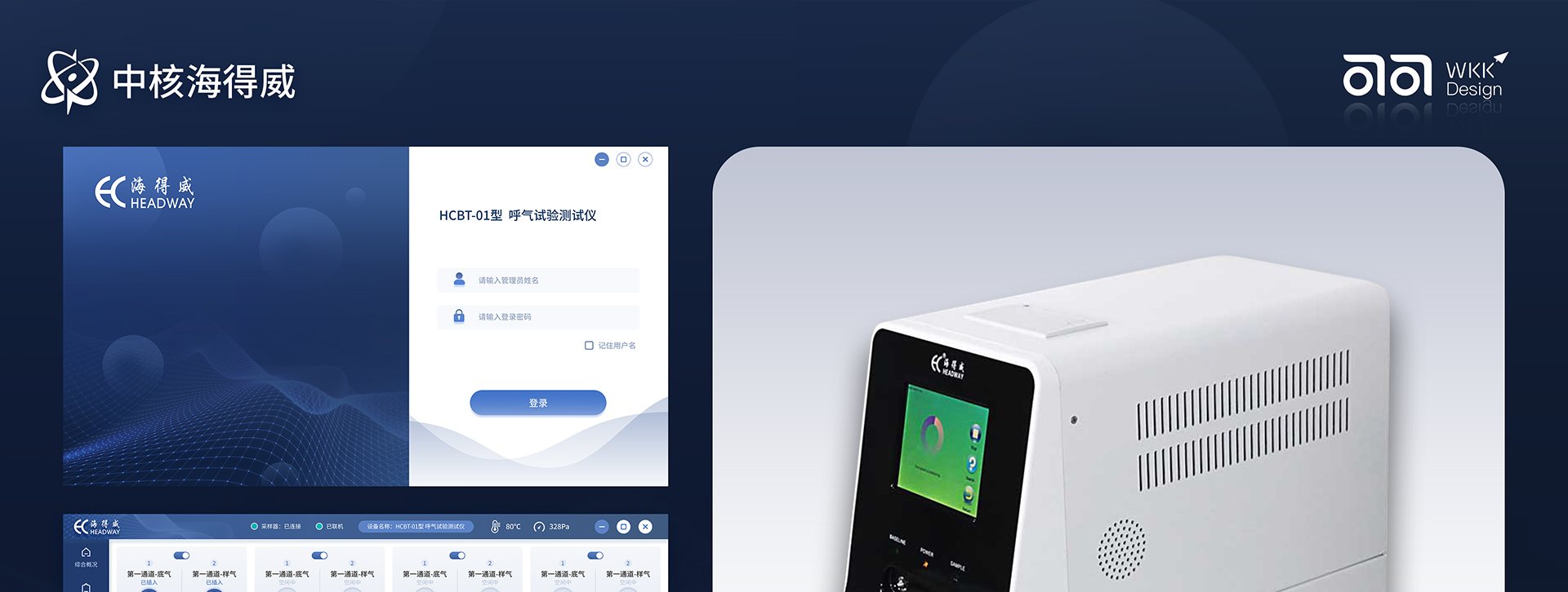 唯可可用研團隊和中核海得威團隊對目標人群的用戶調(diào)研訪談和競品分析,用藍色作為底色塑造現(xiàn)代科技感。 將UI界面與呼吸機緊密結(jié)合,比如,在界面內(nèi)添加圓形、球體,制作氣體動效;用界面的明暗關(guān)系制作立體效果,使畫面更加通透有質(zhì)感。