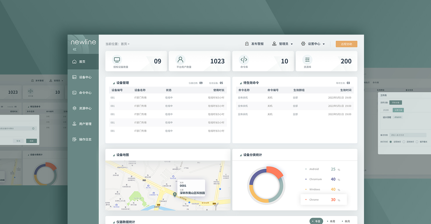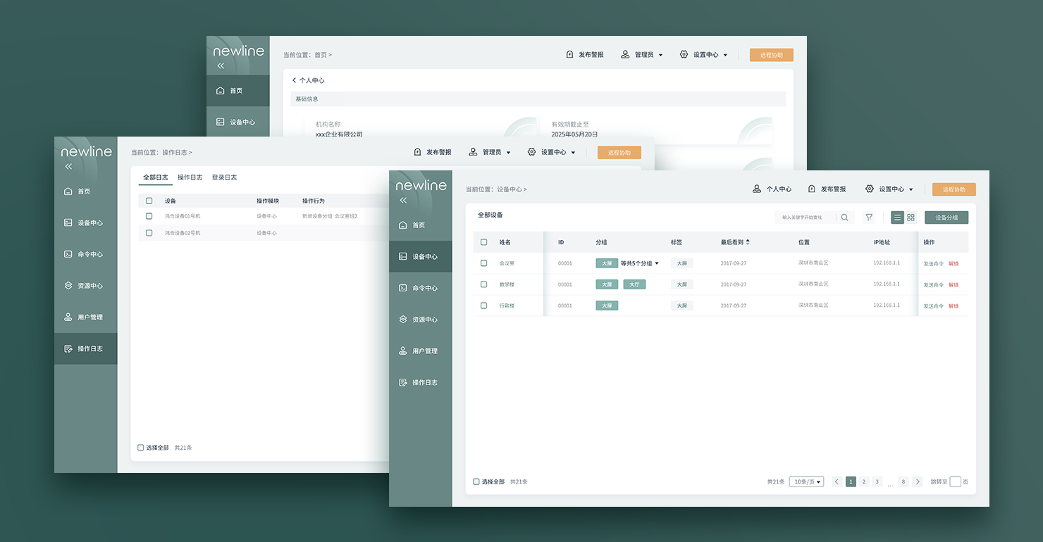 精簡(jiǎn)化設(shè)計(jì),讓使用者不被多余元素干擾操作。在界面中加入留白設(shè)計(jì)從而加大界面空間感和立體感。使畫(huà)面更加舒適通透。作為后臺(tái)管理端,使用者需要通過(guò)該平臺(tái)發(fā)布較為高級(jí)的命令到下級(jí)會(huì)議機(jī)。在設(shè)計(jì)界面時(shí),以卡片式的設(shè)計(jì)區(qū)分版塊區(qū)域,讓用戶更好的區(qū)分各大功能區(qū)域。