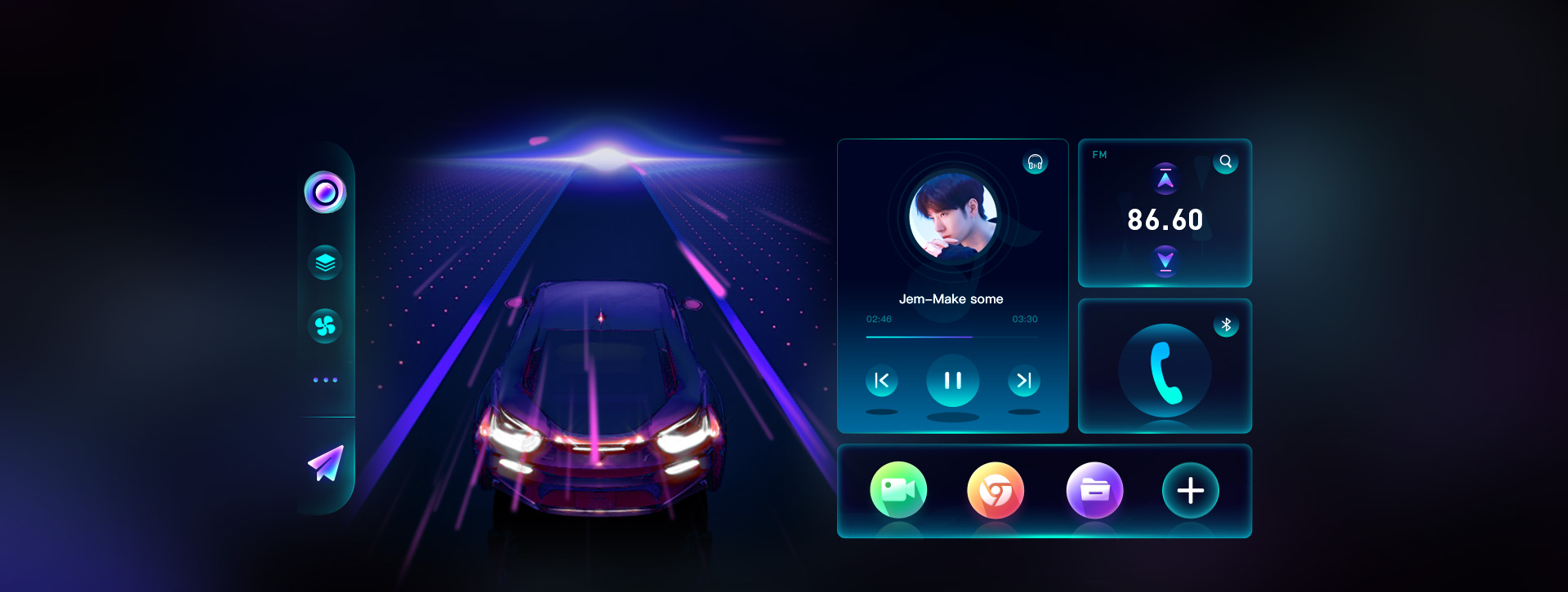 作為適應(yīng)大眾、包容性極強(qiáng)的車載系統(tǒng),UI搭配三色風(fēng)格選擇。用戶可以自主選擇絢麗多彩、迸發(fā)青春氣息的炫彩色,也可以選擇商務(wù)、簡潔的沉穩(wěn)黑,亦或是選擇奢侈、高貴的奢華金。界面結(jié)合用戶需求,加入動感元素,營造界面靈動感,流線化設(shè)計與汽車流暢形態(tài)相呼應(yīng),構(gòu)建車、車載系統(tǒng)兩者間的和諧關(guān)系。